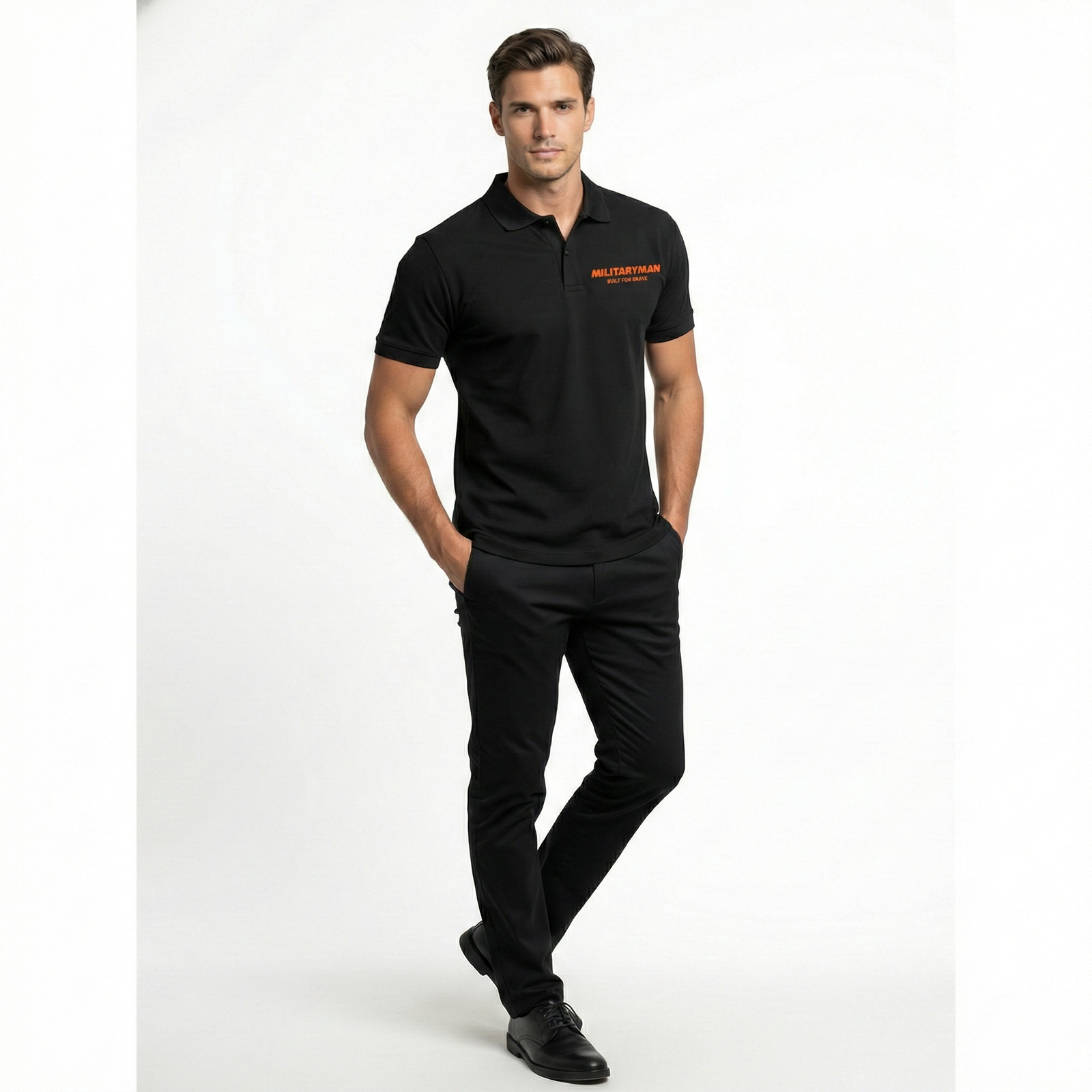 MILITARYMAN Polo T-Shirt, crafted for men who carry discipline, strength, and confidence in every move. Designed with a sharp collar and structured fit, this polo blends military-inspired toughness with everyday comfort.